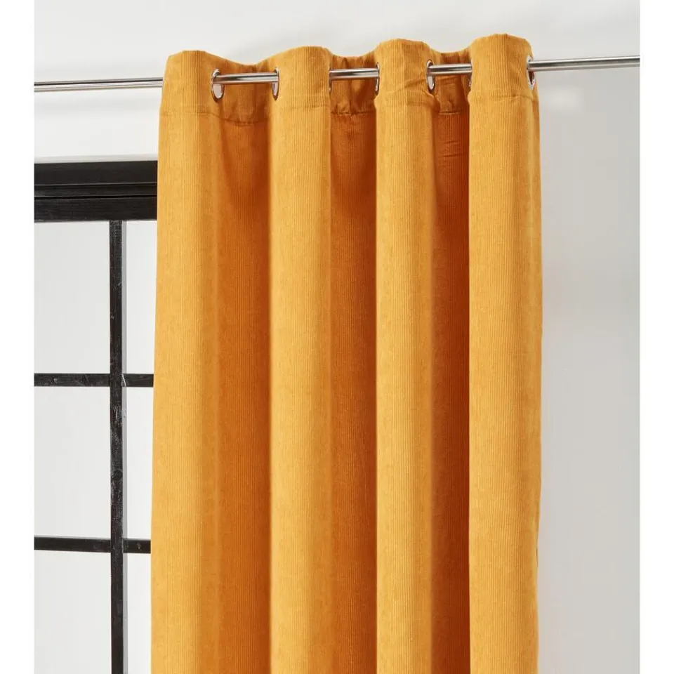 Kant en klaar gordijn met oker kleur. Soepelvallend, stevig en kreukherstellend. 140×265 cm (bxh).