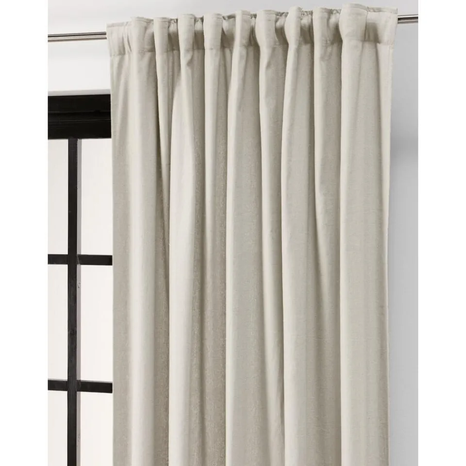 Kant en klaar gordijn met naturel kleur. Inclusief plooiband en lussen. Luchtig, vormvast en soepelvallend. Gemaakt van 100% gerecycled materiaal. 137×260 cm (bxh).