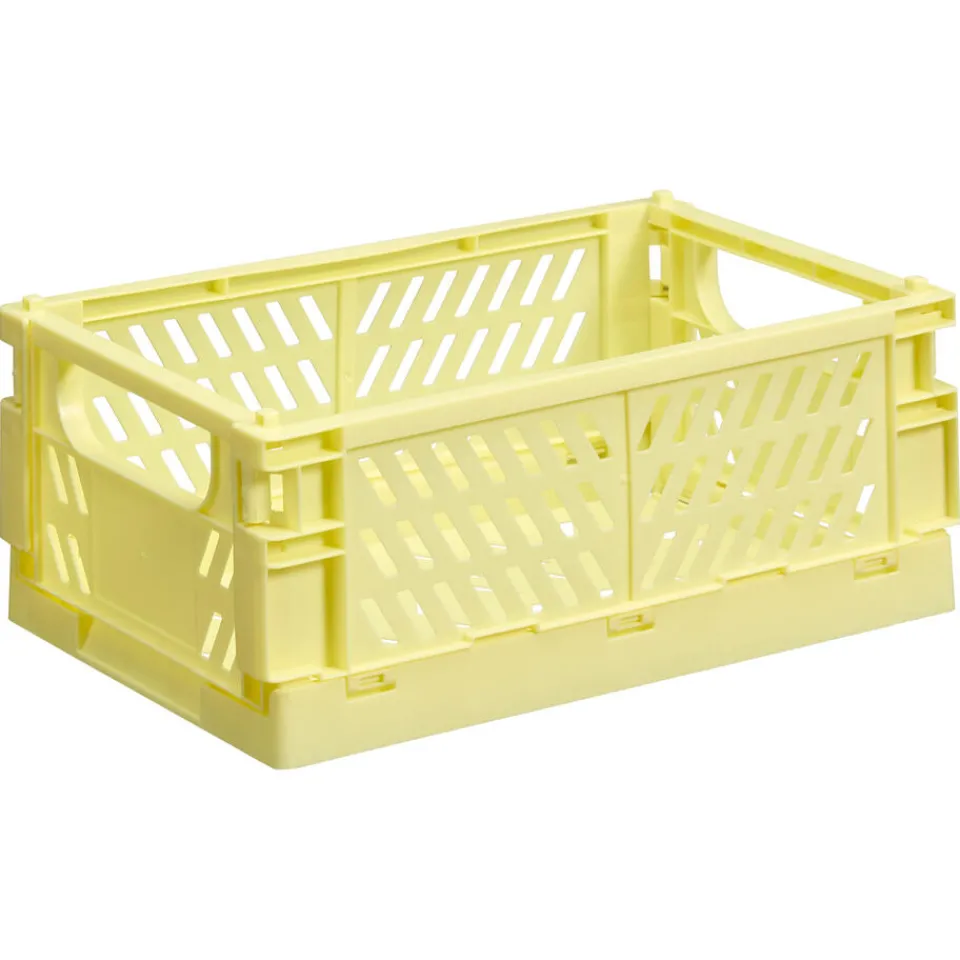 Deze veelzijdige gele klapkrat in maat M is ideaal voor opbergen in stijl.Met zijn moderne design en afmetingen van 25,5×16,5×10 cm (lxbxh) past hij perfect in elke ruimte.Gemaakt van 60% gerecycled kunststof en 40% virgin materiaal,draagt hij bij aan duurzaamheid.Deze klapkrat is niet alleen praktisch, maar ook leuk voor de kinderkamer.