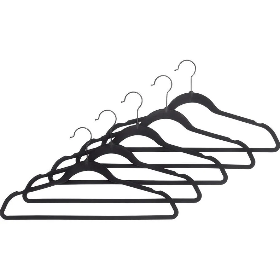 Kledinghangers zwart. 5 stuks.SpecificatiesKleurZwartMateriaalKunststofProduct afmetingen (cm)23x3x44,5 (hxbxd)Lengte44….