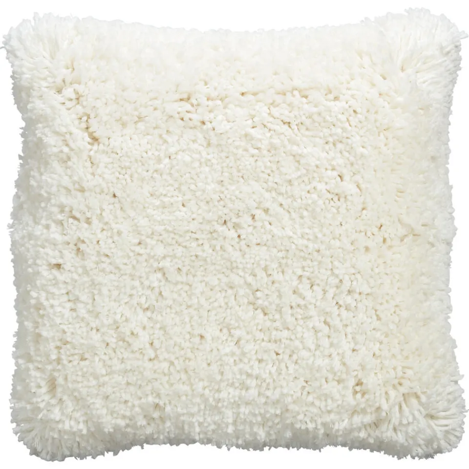 Sierkussen Bazas heeft een witte kleur en een sfeervol en modern bouclé patroon.Het vierkanten kussen heeft een afmeting van 45×45 cm.