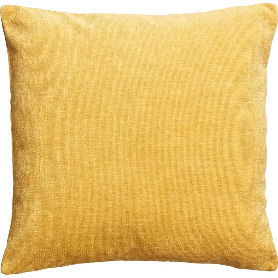 Modern kussen van zacht okerkleurige stof met velours look. 45×45 cm (lxb).SpecificatiesKleurGeelMateriaalPolyesterProdu…