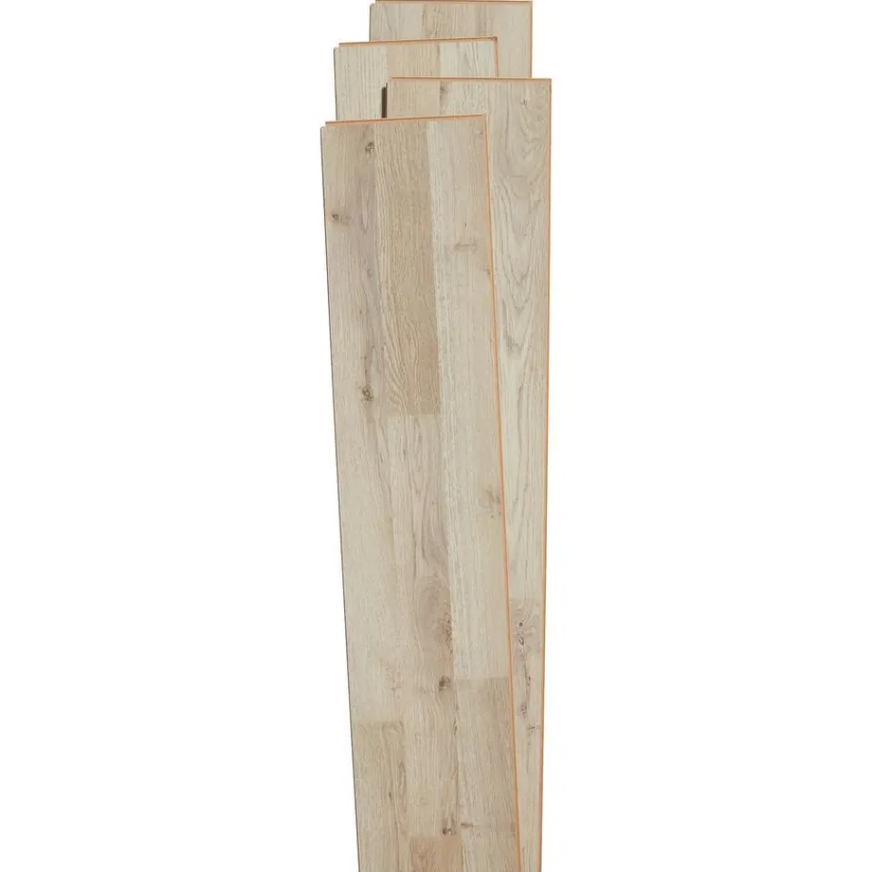 Laminaat met een dessin van licht eikenhout. 6 mm dik.SpecificatiesKleurBruinMateriaalHDFProduct afmetingen (cm)19,3×137…