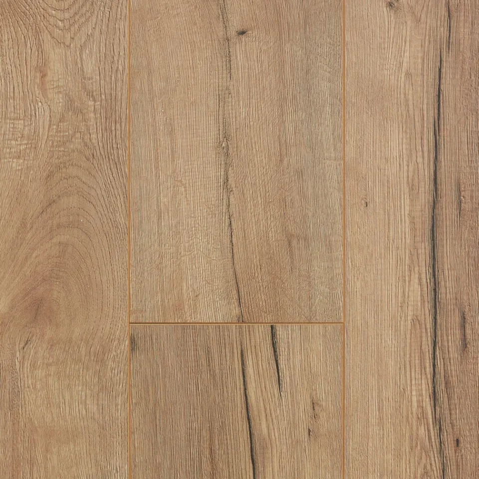 Laminaat Powell Eiken met een dikte van 7 millimeter. Geschikt voor normaal woongebruik.