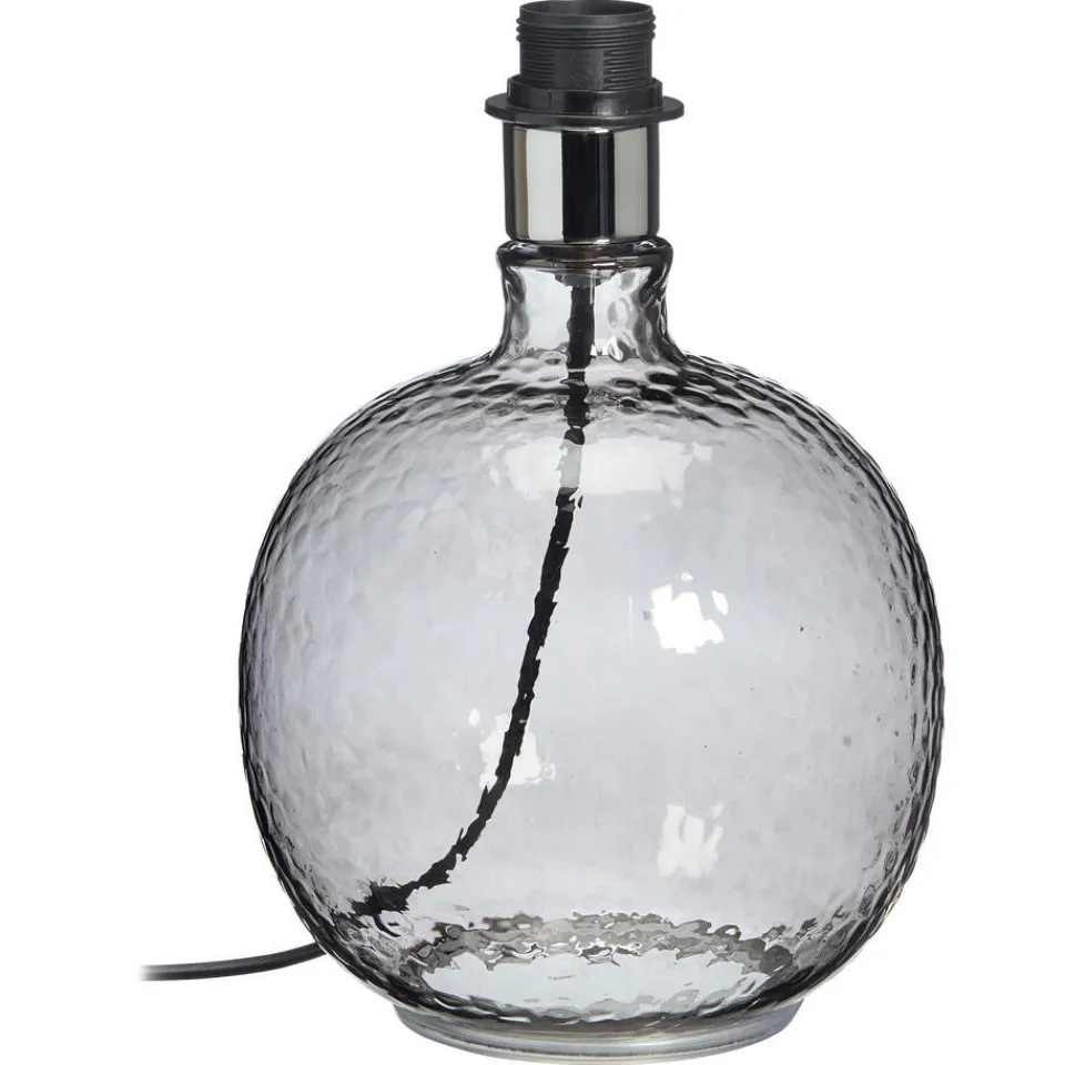 Lampvoet Aton van vergrijsd glas. De lampvoet is voorzien van een E27 fitting. De snoerlengte is 150 centimeter. 28,7 cm hoog.