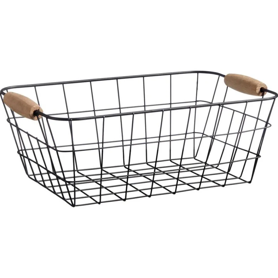 Draadmand van metaal met houten handvaten. 30x20x11 cm (lxbxh).SpecificatiesKleurZwartMateriaalIJzerProduct afmetingen (…