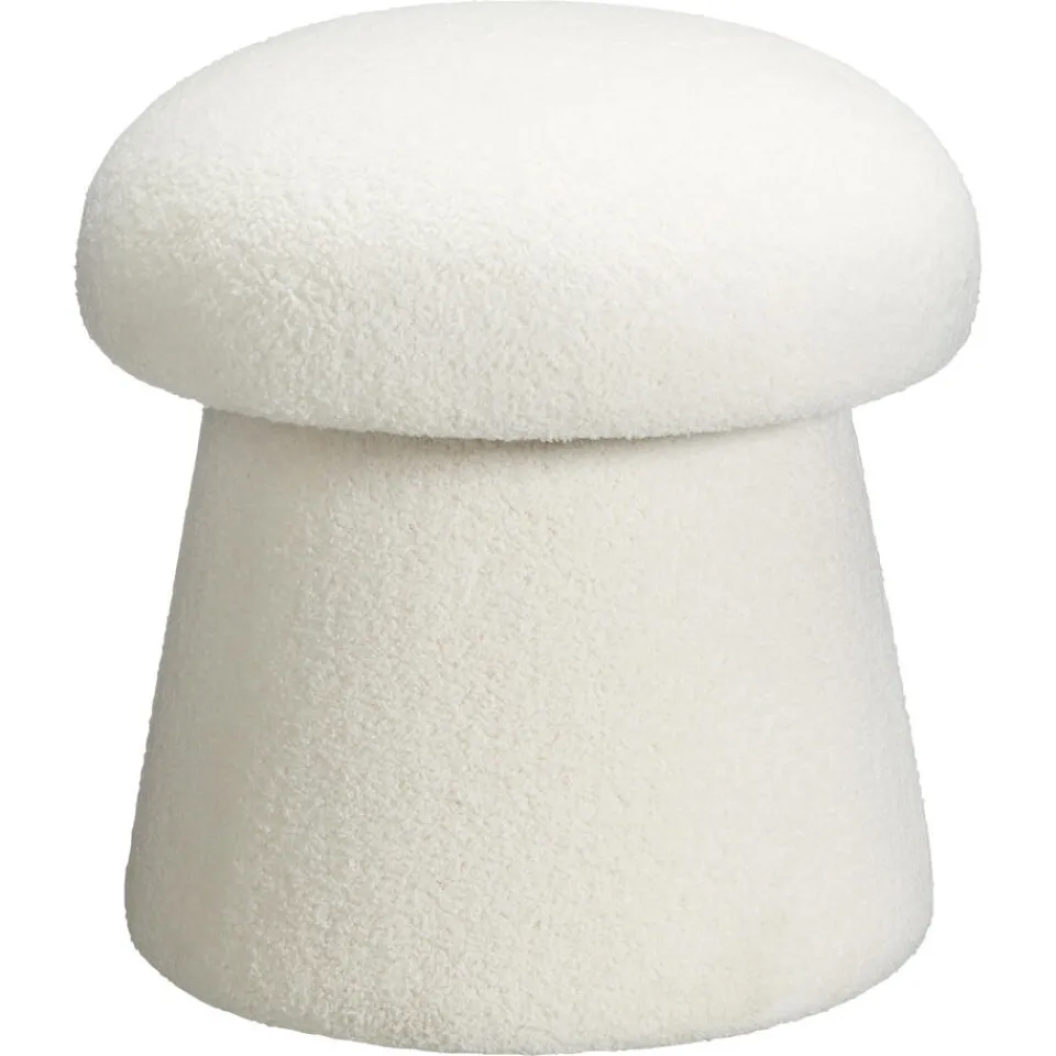 Moderne poef Paciano heeft een speelse vorm en een heerlijke, zachte, off-white teddy bekleding. Perfect als toevoeging aan een vrolijke kinderkamer! Het poefje heeft een afmeting van Ø45×46 centimeter en heeft een maximaal draagvermogen van 110 kg.