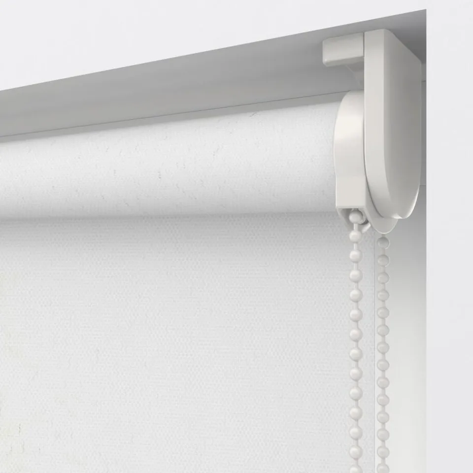 Lichtdoorlatend rolgordijn wit met subtiele structuur. Ideaal voor het regelen van licht en privacy. De stof is namelijk wel lichtdoorlatend maar niet doorzichtig. Zo geniet je van een natuurlijke lichtinval maar kan niemand naar binnen kijken. Dit rolgordijn is op maat te maken en is samengesteld met witte eindkappen, witte kunststof ketting, aluminium ovale onderlat en universele wand- en plafondsteun. Eenvoudig af te nemen met een vochtige doek.