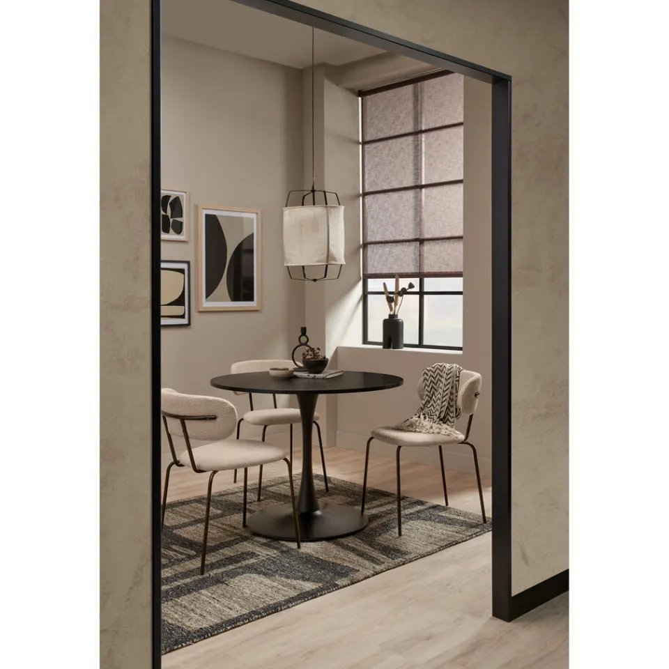 Stoel Bolzano is gemaakt van een off-white kleurige bouclé stof en heeft metalen poten. De zithoogte van deze stoel is …
