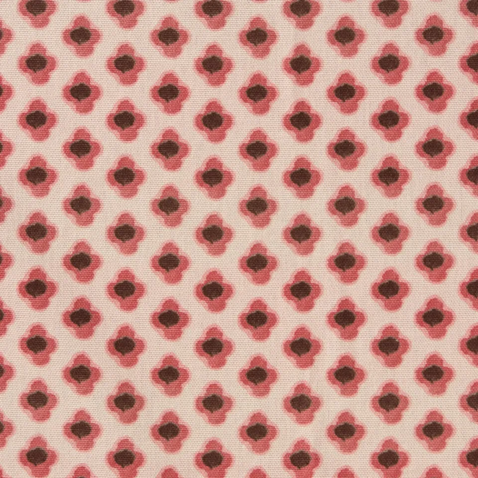Stof Julia heeft een licht roze kleur met een donker roze en zwart bloem patroon. De stof is gemaakt van 100% katoen. Ka…