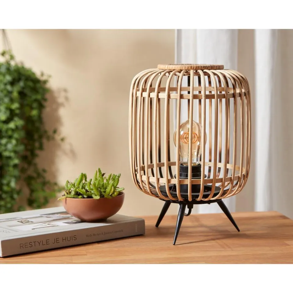Tafellamp van Bamboe met een zwarte voet. Fitting groot E27, exclusief. Afmeting 21×31 cm (dxh).SpecificatiesKleurZwart,…