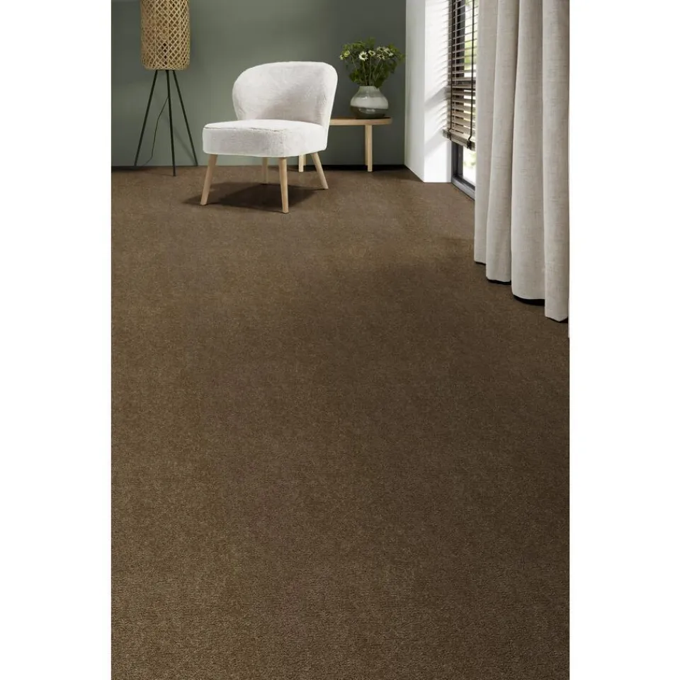 Bruin vloerkleed met gesneden pool. Antistatisch, kleurvast, geeft extra comfort en voelt zacht aan. Geschikt voor vloerverwarming. Verkrijgbaar in verschillende kleuren. 400 cm. Let op: tapijt van 10 strekkende meter of meer kan alleen worden afgehaald in de winkel. Wil je 10 strekkende meter of meer bestellen om bijvoorbeeld in verschillende ruimtes te leggen? Bestel dan meerdere kleine coupages.