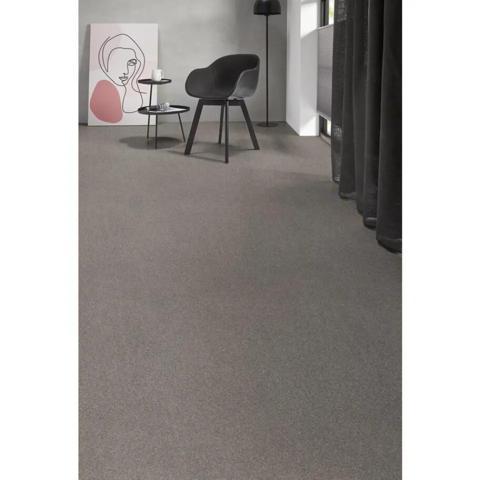 Grijs tapijt met actionback. Antistatisch, geeft extra comfort en voelt zacht aan. Geschikt voor vloerverwarming en in combinatie met een ondertapijt geschikt voor trapbekleding. Verkrijgbaar in verschillende kleuren. 400 cm. Let op: tapijt van 10 strekkende meter of meer kan alleen worden afgehaald in de winkel. Wil je 10 strekkende meter of meer bestellen om bijvoorbeeld in verschillende ruimtes te leggen? Bestel dan meerdere kleine coupages.