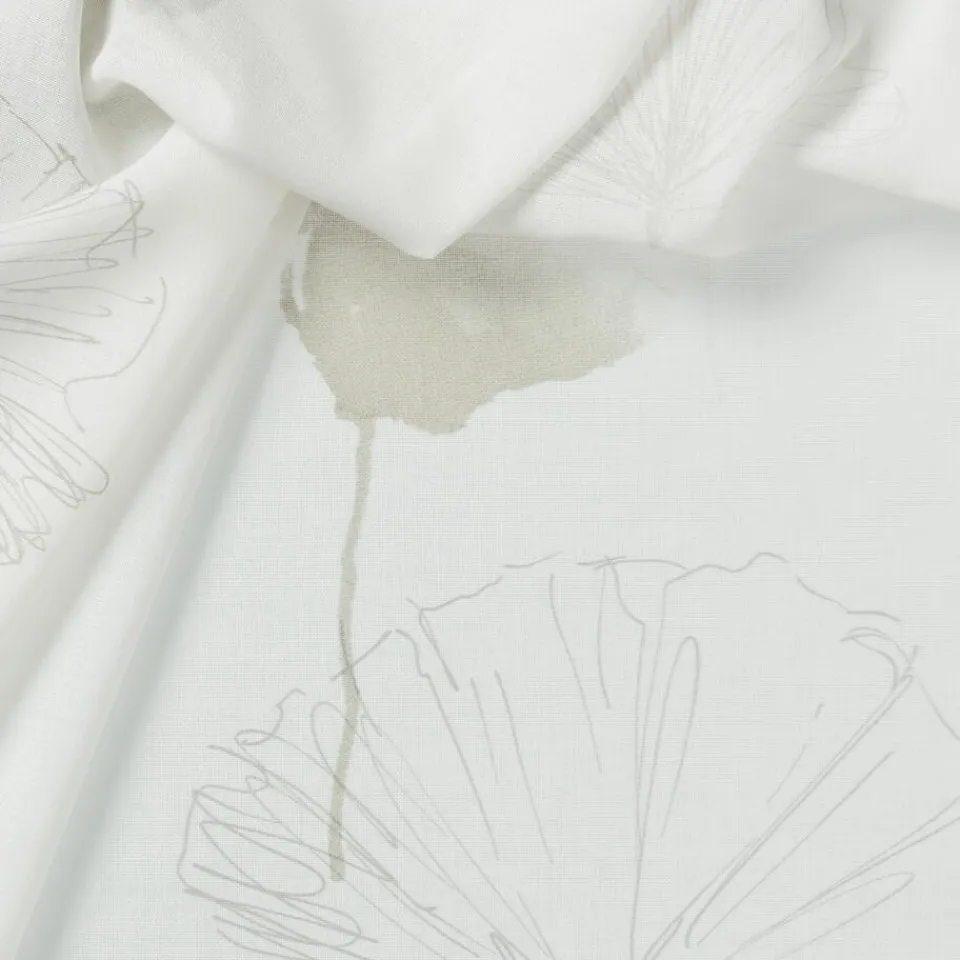 Vitrage Aukje in een witte kleur. Deze stof heeft een hele subtiele print van grijze bloemen. Gemaakt van 100% polyester…