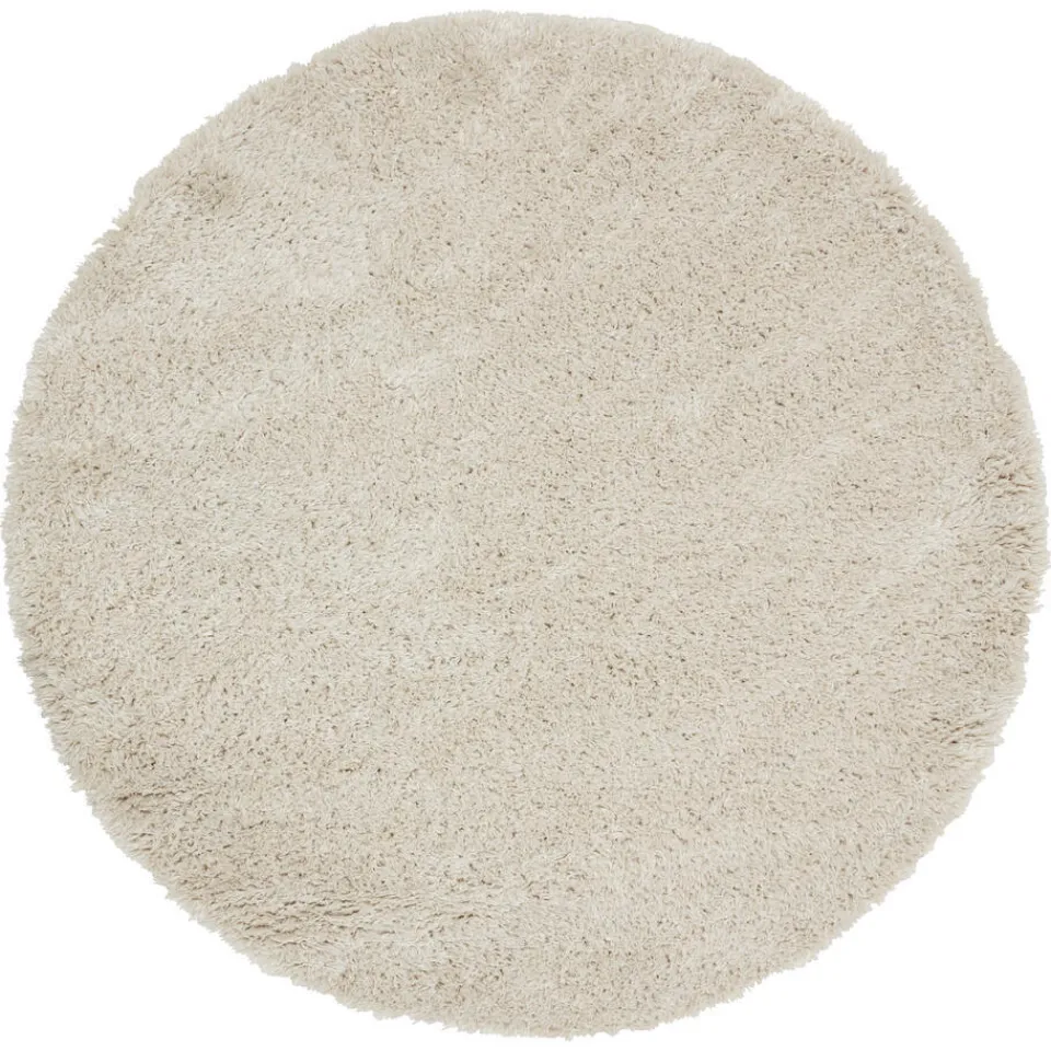 Vloerkleed Cailou heeft een off-white kleur. Dit ronde ontwerp is hoogpolig en is gemaakt van gerecycled plastic. ø180 centimeter.