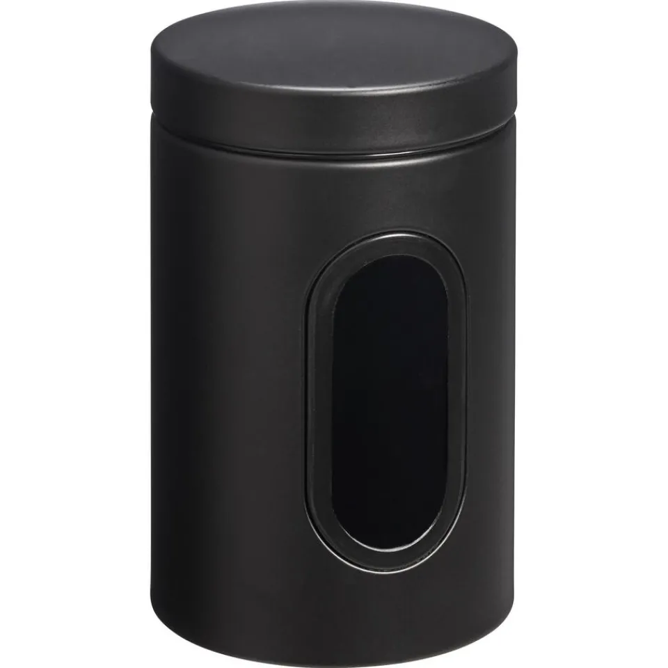 Metaal zwarte voorraadpot met venster. 17,2 cm hoog.SpecificatiesKleurZwartMateriaalMetaalProduct afmetingen (cm)17,2×11…